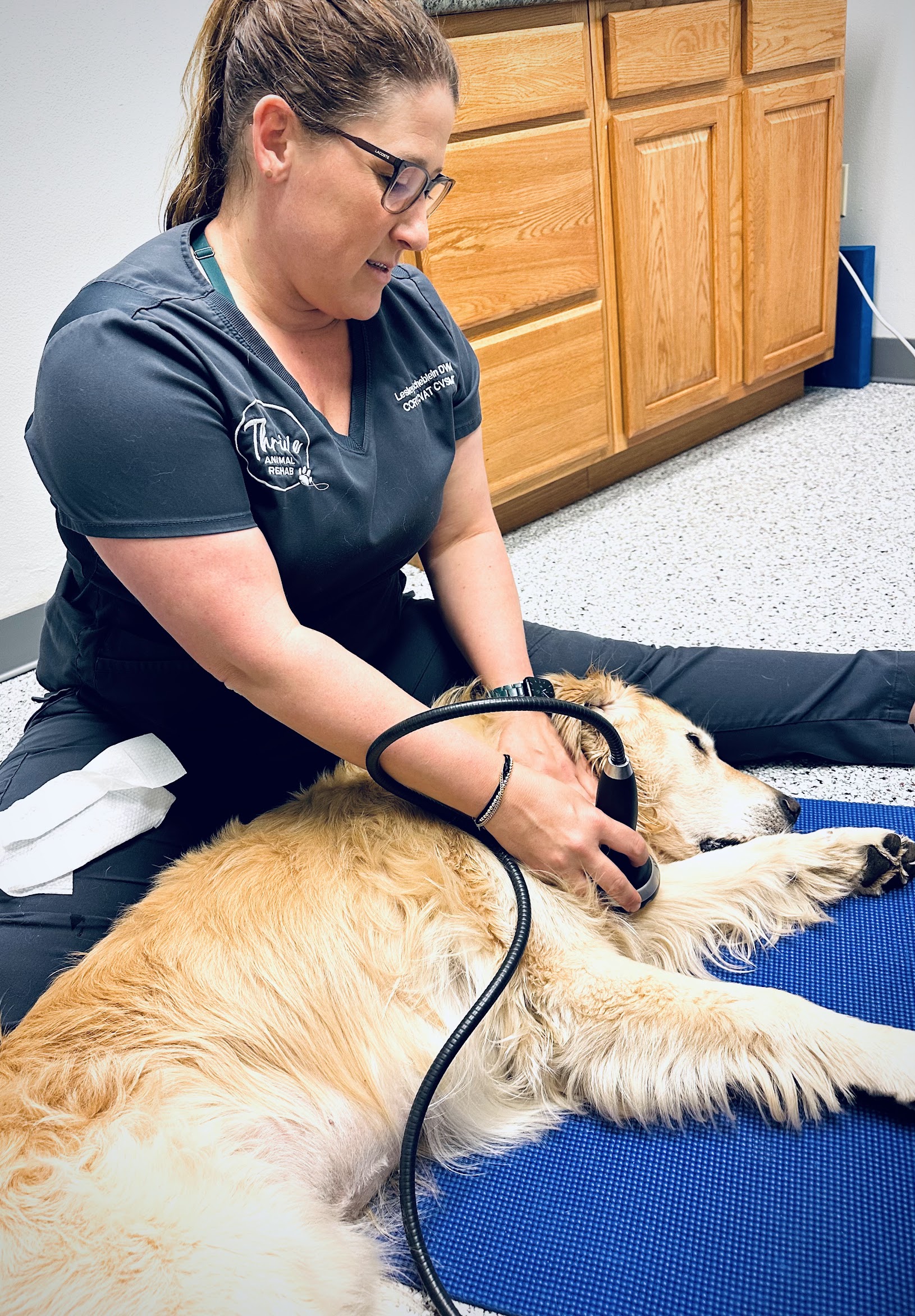 Shockwave therapy is a non-invasive, drug-free treatment for pets experiencing pain and lameness. The technology employs focused high-energy sound waves to stimulate the body’s healing, regeneration, and pain relieving processes. While prior technology required dogs be sedated for shockwave therapy, advances in technology have made this modality of treatment more widely available for your pet without sedation. At Thrive, we use Piezowave technology by Elevation Vet USA.