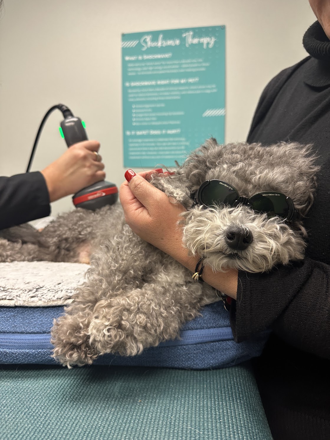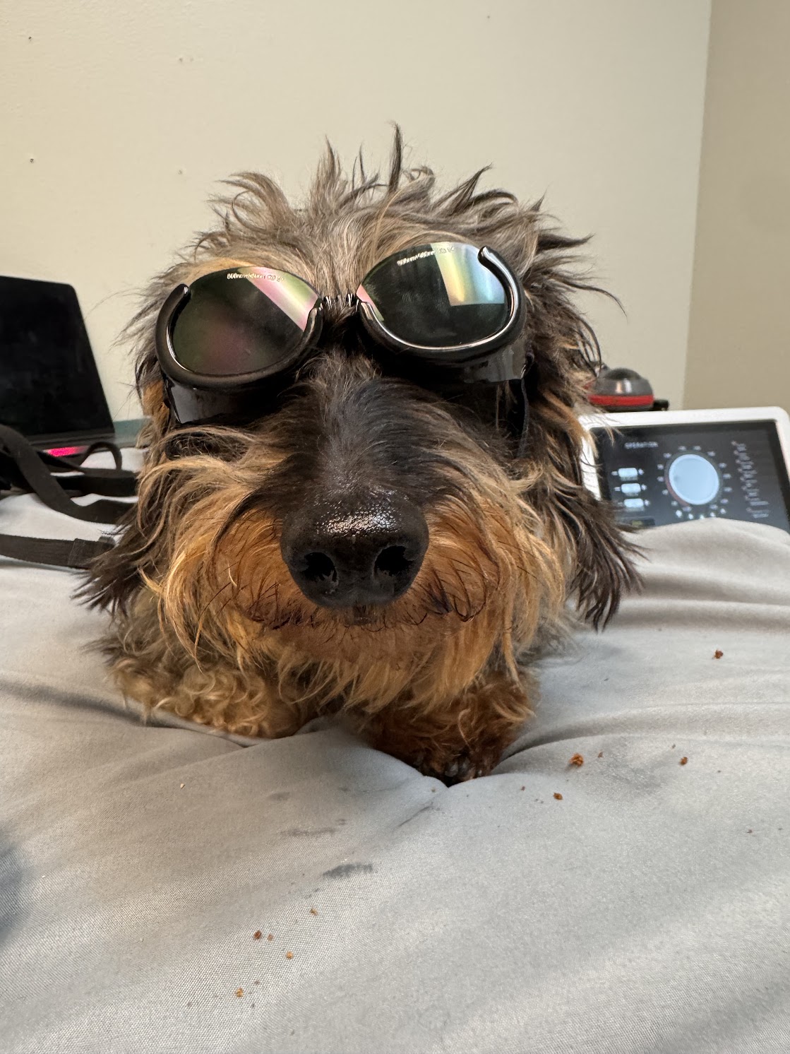 In veterinary medicine, there are two types of lasers that are used — a surgical laser that cuts through tissue and a cold therapy laser used to reduce pain and inflammation in our patients. Therapeutic lasers use light waves of a specific wavelengths to activate or change the energy of cells. The light affects the tissue at a cellular level, causing a biochemical response in the cells called photobiomodulation (PBM).